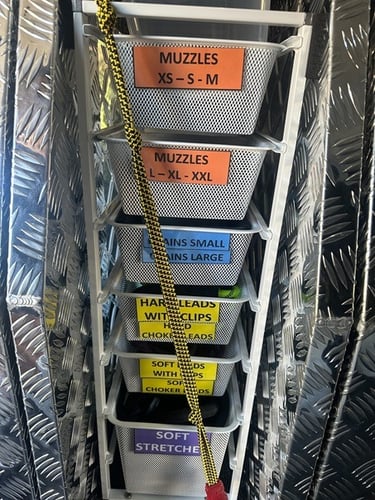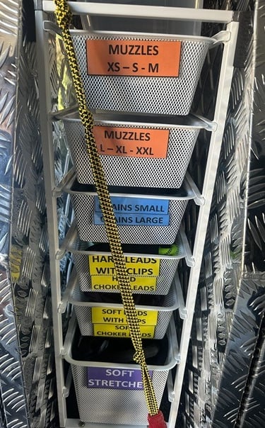 Extra small, small, medium, large, X-large, & XX-large muzzles.