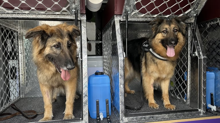 The vehicle is equipped with front- and rear-mounted heating and air conditioning for the comfort of people and pets. This ensures that animals are not exposed to heat during warmer months.